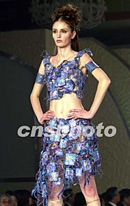 日本著名時裝設計師桂由美采用日本傳統工藝,新春在東京展示她創新的一款時裝,運用了揉紙、紙板等和紙工藝技術組合加工而成,富于立體感。