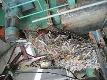 2002年10月,廣東東莞金洲紙業新上一條日產1000噸高強瓦楞紙制漿生產線,其打漿設備-選用的是美國KBC公司制作的最大13.5DR 140m3 D型水力碎漿機,與其配套的絞繩機是濟寧華一輕機的新產品-ZTS3型絞繩機。它是華一公司2002年在消化吸收國際先進技術的基礎上,結合多年設計生產ZTS1型、ZTS2型絞繩機的經驗,自行開發研制而成的先進的粗篩選凈化設備,主要與水力碎漿機配套使用,使含在廢紙中的雜質如鐵絲、細繩、棉紗、塑料片等長條形雜質在水力碎漿機運行過程中不斷旋轉纏繞,形成一根股繩并連續被拉出、排掉,使漿料得到初步凈化,具有工作效率高,動力消耗低,結構簡單、操作維修方便等優點。