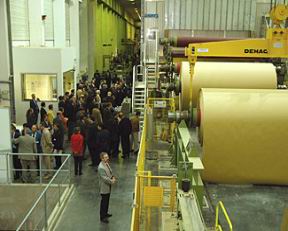 第三天下午對奧地利W. Hamburger紙業公司位于Pitten市的最新改造完的4號紙機的參觀是又一個亮點,證明Voith造紙工藝技術的實力。W. Hamburger公司是歐洲瓦楞紙板的主要生產廠家之一,年產量高達60萬噸。4號機由Voith提供,生產高強箱板紙和瓦楞紙芯紙。在2004年2月由Voith進行的大改造剛剛完成,將產量從19.5萬噸/年提高到26萬噸/年,4號機從而成為世界上最高效的瓦楞紙機。4號機重點改造了濕部,采用了最先進的技術,確保了最優秀的產品質量及最大化的生產能力。改造包括長網、DuoFormer Top夾網成型器,以及DuoCentri NipcoFlex四輥三壓區的復合靴式壓榨。此外,還重點提高了干燥效率,配備了一臺新的卷紙機和一臺新型的VariFlex M復卷機。參觀完畢,岳陽紙業的股份總經理黃亦彪和副總兼總工劉曉光十分感慨:“想不到歐洲生產瓦楞原紙也使用如此高科技水平的紙機,并且能創造很高的利潤,對我們的生產觀念觸動很大。”玖龍紙業總經理劉名中和太倉公司的副總鐘宏祥和對4號機的配置很感興趣,尤其是對Fibron真空引紙系統能大大縮短引紙時間和提高紙機效率, 表示了下一步的購買意向。