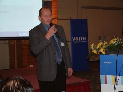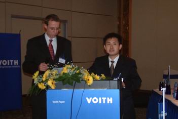 福伊特造紙控制總經(jīng)理Josef Sattler與福伊特造紙自動控制項(xiàng)目經(jīng)理鄭慶華做了《Voith Paper Automation——把過程變成了數(shù)據(jù)》報(bào)告。