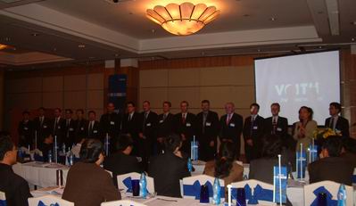 25日早上9點(diǎn),“超越2004”客戶技術(shù)交流會正式開始,福伊特造紙技術(shù)中國區(qū)總裁劉明明女士首先致歡迎辭。劉明明說,幾十年前,VOITH就是業(yè)內(nèi)被認(rèn)為是第一流的設(shè)備供應(yīng)商并建立了造紙技術(shù)的標(biāo)準(zhǔn),并以其服務(wù)、技術(shù)實(shí)力和與眾不同的、專業(yè)化的項(xiàng)目管理而著稱。所有這些標(biāo)準(zhǔn)都是成功的造紙生產(chǎn)的基礎(chǔ),但實(shí)現(xiàn)長期成功的、具有決定意義的關(guān)鍵詞卻是可靠性!邀請各位出席這次交流會,福伊特將向各位提供VOITH的信息、技術(shù)以及全面的服務(wù)。我們確信只有從漿料制備到造紙?jiān)O(shè)備以及整飾和包裝的完美工藝技術(shù)才對高效率的生產(chǎn)工藝具有重要作用。為此邀請大家聽一聽演講,并提出問題,共同進(jìn)行深入的討論和對話。