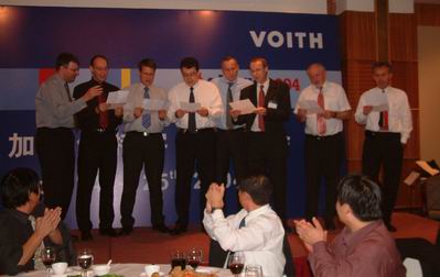 隨后,福伊特舉行晚宴,并邀請了山東省的一些演員進(jìn)行精彩演出。在宴會期間,福伊特的國外專家還為大家?guī)砹司实墓?jié)目,演唱了《友誼地久天長》和奧地利民歌,博得現(xiàn)場的陣陣喝彩。