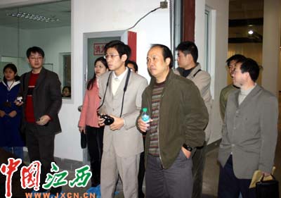 鐘虹光(前右二)帶領(lǐng)媒體記者參觀江中藥廠生產(chǎn)車間
