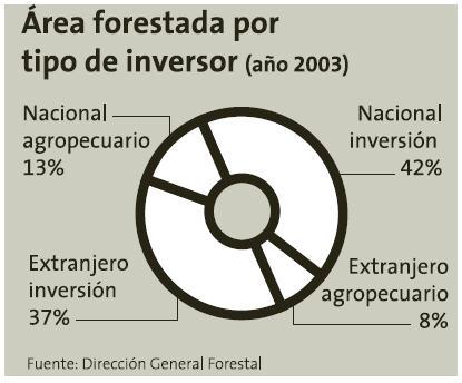 到目前為止,在烏拉圭的林業(yè)投資中,國有資本占55%,其中商業(yè)用林投資占42%,牧農(nóng)用林占13%;外國資本占4513%,其中商業(yè)用林投資占37%,牧農(nóng)用林占8%。