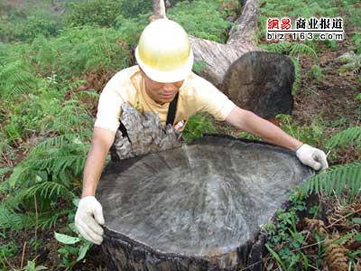 在采訪中,不止一個當地人告訴記者,APP來到這里后先實行“三光政策”,就是“圈光、砍光、燒光”。然后再種上它的桉樹。這個程序就是先將看中的宜林荒山或有林地先通過一些辦法拿到手,然后將地上的林木都砍伐干凈,砍下的那些數十年樹齡的天然林木,因為運輸汽車進不來,好多都運不走,就地焚燒了。運用這種高效快捷的“三光政策”,在滇西南深山中,那些茂密的天然林不見了,取而代之的是一株株幼小的長勢良好的桉樹苗。