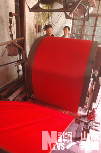 新華網(wǎng)山東頻道11月2日電 被譽(yù)為“魯南紅紙第一村”的山東省郯城縣勝利鄉(xiāng)沙沃村,刷制紅紙已有300多年的歷史,全村571戶(hù)曾家家染缸紅,戶(hù)戶(hù)紙兒響。去年初,當(dāng)?shù)卣騽?shì)利導(dǎo),協(xié)調(diào)信用社資金扶持,成立了12家紅紙公司擴(kuò)大生產(chǎn)規(guī)摸。目前,全村年生產(chǎn)紅紙3000余萬(wàn)張,銷(xiāo)售額達(dá)820多萬(wàn)元,暢銷(xiāo) 河南、江蘇、安徽等20多個(gè)省市,僅此一項(xiàng)人均增收1700元,成為遠(yuǎn)近聞名的富裕村。(房德華 杜明函 攝)