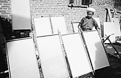 2005年8月13日,“臨滄傣族構皮手工造紙工藝”調查組一行5人從臨滄出發,赴耿馬傣族佤族自治縣孟定鎮和永德縣永康鎮進行實地調查。臨滄傣族構皮手工造紙工藝保存得最完整的主要是孟定鎮芒團村和永康鎮忙石寨兩個地方。我們進入忙團村時,正值天氣晴朗、太陽高照,村里許多人家的場院里都擺放著紙簾子在曬新紙。孟定鎮文化站的金紫明同志將我們帶到常年四季都造紙的玉勐嘎家。在61歲的玉勐嘎家里,我們親眼看見了古法手工造紙的完整過程。