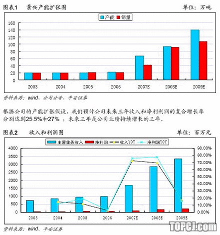 公司產能擴張保持強勁勢頭,2006-2009年4年內的復合增長率將達到58.8%,未來4年維持高速產能擴張。產能的快速增長是公司業績提升的一個要素之一,140萬噸后的規模化生產的逐步推進將更進一步推動業績增長。項目建設期2年,項目建成后每年新增銷售收入191,453萬元,凈利潤19,720萬元。