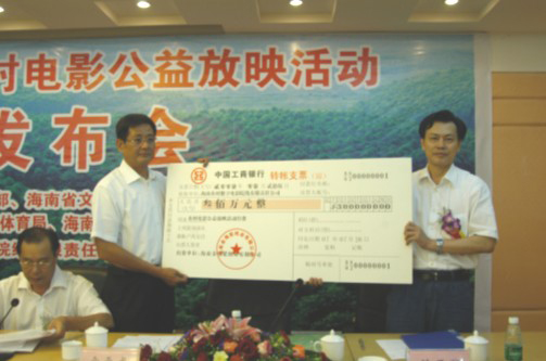 2007年7月25日上午9:00,在?谑幸4缶频耆龢堑谝粫(huì)議室舉行“金光耀瓊州”農(nóng)村電影公益放映活動(dòng)新聞發(fā)布會(huì),本次新聞發(fā)布會(huì)由海南省文明辦陳修演主任主持。海南省委宣傳部、海南省文明辦、海南省文體廳、海南金海漿紙業(yè)有限公司、海南省電影公司、海南農(nóng)村數(shù)字電影院線,各市縣有關(guān)單位領(lǐng)導(dǎo)出席了新聞發(fā)布會(huì)。