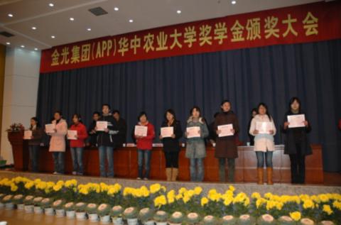 自2006年起,金光集團APP在華中農業大學捐資6萬元設立了金光集團APP華中農業大學獎學金,旨在通過獎勵品學兼優、家庭困難的優秀學生,鼓勵同學們奮發圖強。