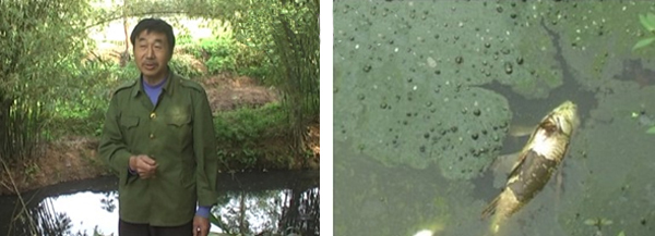養魚專業戶熊先知村民含淚介紹魚塘死魚