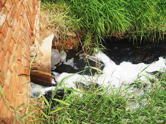 沙王村一村民帶著記者找到了被污染的河水。據悉,當地人把該河稱之為“人工渠”,主要是為了防洪、抗旱時灌溉使用的。村民告訴記者,自宏光造紙廠開始生產之日起,這條人工渠就改變了它原有的使用用途,變成了今天讓人難以忍受的臭水溝。