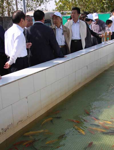 在該公司的蚯蚓養殖試驗區,金院士及隨行人員認真了解了該公司的固廢處理情況。當聽到生產過程中產生的污泥已變廢為寶,批量生產生物有機肥料,廣泛用于林業、農業,金院士連豎大拇指。