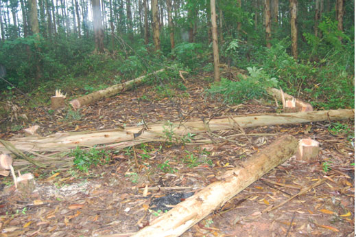 周田鎮較坑村村民痛心地說:"他們(盜伐分子)每天晚上都開著大車來偷,再這樣下去,恐怕我們也分不到紅利了。"村民告訴記者,村里把林地承包給金韶關公司種植桉樹,桉樹從種植到成材需要五六年時間,采伐后他們可以得20%的紅利,如果盜伐分子再這樣瘋狂砍伐桉樹,那么到6年輪伐時,他們只能算是空歡喜一場。村民們表示,如果再這樣下去,為維護自己的合法權益,他們也只有鋌而走險向盜伐者學習了。