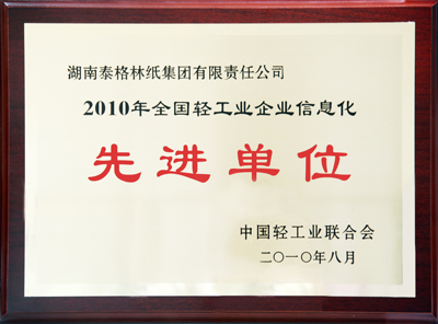 10月11日, 中國輕工業企業信息化發展論壇暨表彰大會在北京隆重召開。在本次大會上,泰格林紙集團榮獲全國輕工行業信息化先進單位,集團公司董事長吳佳林榮獲優秀領導人稱號。