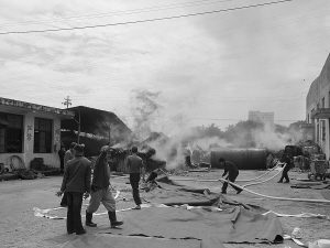消防人員到來(lái)之前,工廠員工緊急撤離并自行滅火