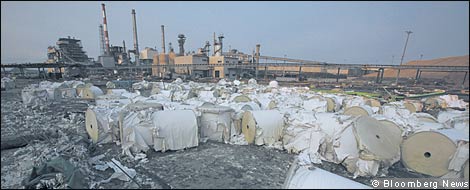 3月11日的海嘯過后,當日本制紙集團(Nippon Paper)的管理人員從東京抵達日本東北地區石卷市(Ishinomaki)的工廠時,他們不得不從廢墟中清理出一條狹窄的道路,才能到達大門口。停車場上堆積著被掀翻的汽車,遍地都是大卷大卷未經切割的紙張。