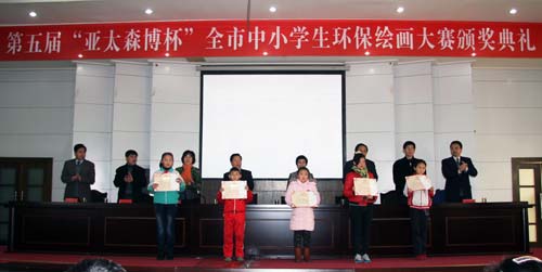 12月22日,由市僑聯、日照日報社、市教育局、市環保局主辦,山東亞太森博漿紙有限公司和日照日報文教周刊部承辦的第五屆“亞太森博杯”全市中小學生環保繪畫大賽頒獎典禮在日照日報社五樓會議室隆重舉行。