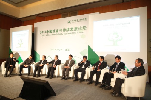 12月14日,以“林漿紙一體化:引領(lǐng)產(chǎn)業(yè)的未來(lái)”為主題,由中國(guó)新聞社、中國(guó)新聞周刊聯(lián)合APP(中國(guó))主辦的2013中國(guó)紙業(yè)可持續(xù)發(fā)展論壇在京舉行。論壇匯聚了來(lái)自政府、企業(yè)、行業(yè)協(xié)會(huì)以及學(xué)術(shù)界百余位嘉賓,就中國(guó)紙業(yè)發(fā)展現(xiàn)狀、轉(zhuǎn)型升級(jí)、節(jié)能減排等相關(guān)議題進(jìn)行了深入探討。
