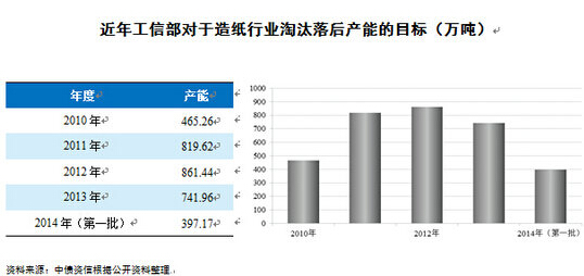 工信部近日公布了2014年首批淘汰落后和過剩產(chǎn)能企業(yè)名單,涉及15大行業(yè),其中水泥行業(yè)以381家企業(yè)居首,造紙和鐵合金分列二、三位。根據(jù)名單統(tǒng)計(jì),造紙行業(yè)2014年年底前共需淘汰約397萬噸產(chǎn)能。此次工信部要求列入公告名單內(nèi)企業(yè)的生產(chǎn)線(設(shè)備)在2014年底前徹底拆除淘汰,不得向其他地區(qū)進(jìn)行轉(zhuǎn)移。