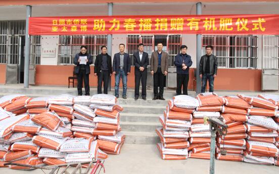 一年之計在于春。3月23日,亞太森博(山東)漿紙有限公司聯合市僑聯共同為五蓮縣高澤鎮西穆家官莊村的全體村民捐贈了8噸高附加值生物有機肥,幫助村民做好春播工作。市僑聯主席張宗煥,亞太森博副董事長、日照森博農用工業科技公司負責人胡志順,西穆家官莊村“第一書記”馮振等出席了捐贈儀式。