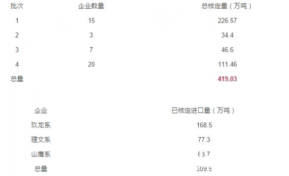 截至目前,環(huán)保部固廢管理中心共公示了四批進(jìn)口名單,合計(jì)核定進(jìn)口量約419萬(wàn)噸。玖龍、理文、山鷹三大家總計(jì)獲得309.5萬(wàn)噸,占已核定總量的74%。