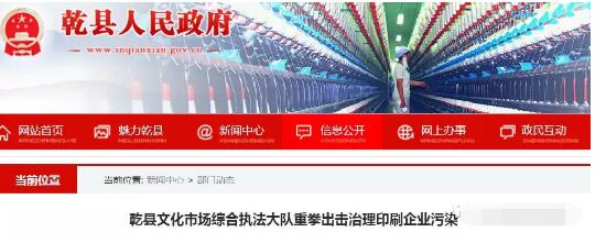 7月19日至22日,陜西省咸陽市乾縣組織文化市場綜合執(zhí)法人員針對全縣印刷企業(yè)污染問題開展集中治理。