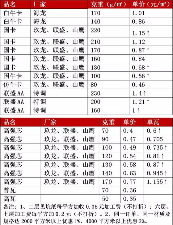 福建上宇包裝9月8日紙板報(bào)價(jià)單如下: