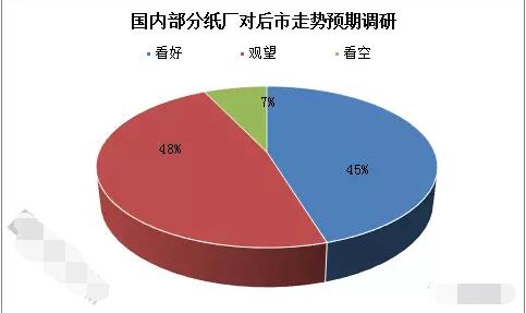 廢紙后市預(yù)測(cè),9月后半期至十月假期結(jié)束后價(jià)格上升可能較大。因今年中秋國(guó)慶兩假不合并,假期較長(zhǎng),紙廠(chǎng)開(kāi)工后為刺激上游打包站,帶動(dòng)原料成本上漲的可能性相也對(duì)較大。提醒留意紙廠(chǎng)放假前后紙價(jià)上升。預(yù)計(jì)雙節(jié)過(guò)后紙價(jià)將有所穩(wěn)定。 瓦楞箱板紙后市預(yù)測(cè),卓創(chuàng)資訊通過(guò)對(duì)46家瓦楞紙及箱板紙中大型紙企調(diào)研顯示,對(duì)后市持觀(guān)望心態(tài)的占比44%,環(huán)比增加1個(gè)百分點(diǎn);對(duì)后市持看空心態(tài)的占比39%,較上周增加6個(gè)百分點(diǎn);對(duì)后市持看好心態(tài)的占比17%,環(huán)比下滑7個(gè)百分點(diǎn)。近期瓦楞紙及箱板紙市場(chǎng)呈現(xiàn)疲軟下滑走勢(shì),目前上下游仍顯僵持,且規(guī)模紙企報(bào)價(jià)穩(wěn)定執(zhí)行優(yōu)惠,導(dǎo)致場(chǎng)內(nèi)人士持觀(guān)望心態(tài)仍居多。但隨著中秋節(jié)需求掃尾,場(chǎng)內(nèi)看空人士逐漸增多,但仍存少量持看好心態(tài)人士。易貿(mào)紙業(yè)分析,從長(zhǎng)期來(lái)看由于紙廠(chǎng)周期性補(bǔ)充原料,國(guó)廢行情將維持區(qū)間震蕩,9月底或10月初或仍有一波小高峰出現(xiàn)。