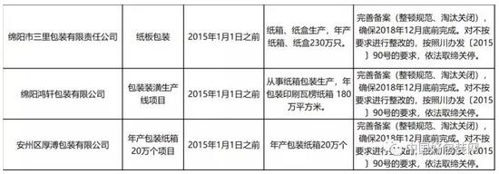 其中,綿陽市三里包裝有限責任公司、綿陽鴻軒包裝有限公司、安州區厚溥包裝有限公司3家紙箱廠項目名列其中。