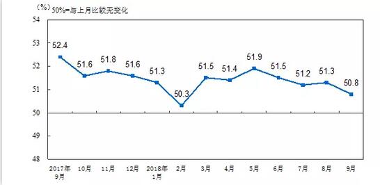 數據來源:國家統計局 從數據中,我們可以明顯看到17年9月以來,我國制造業的PMI指數一直是呈波動下降態勢的。而在九月,制造業的PMI指數僅為50.8。要知道如果PMI指數接近于收縮指數(低于50)是十分危險的! 制造業是中國崛起的關鍵。無“農”不穩,無“工”不強,無“商”不富。在三個產業中,工業是真正具有強大造血功能的產業,對經濟的持續繁榮和社會穩定有著非同尋常的意義。