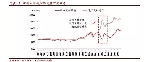 雖近期國產廢紙價格略有疲態,但考慮未來兩年我國廢紙進口大幅下滑,且回收量難以迅速補足供給缺口,國產廢紙供不應求局面仍較為確定,使得國產廢紙價格中樞受到較強支撐,未來兩年有望繼續穩中向上。同時,因趨嚴的廢紙進口政策,國產廢紙、進口廢紙價格分化將成為常態。  來源:紙引未來網、中金網、紙去哪了、再生資源消息、廢紙寶,紙引未來網綜合