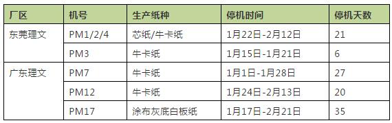 導語:2018年還有一個月,紙廠們的2019年停機計劃已經出來了,今年的市場著實令人心寒。繼11月28日東莞玖龍發布春節期間停機計劃后,11月29日,理文也發布東莞、廣東基地2019年停機檢修計劃。 緊隨玖龍之后,理文發布2019年1月、2月停機計劃