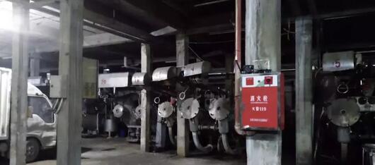 上千平方米的廠房內,洗染設備全部停止生產運轉,用于運輸印染紡織物的塑料推車全部存放一邊,工廠地面清洗比較干凈,污水排放口已見不到污水排放。