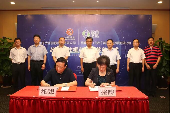 2018年8月2日,山東太陽控股集團(tuán)有限公司與協(xié)鑫智慧(蘇州)能源電力投資有限公司在山東圣德國際酒店舉行簽約儀式。此次戰(zhàn)略合作框架協(xié)議的簽署,標(biāo)志著雙方合作關(guān)系的全面提升,雙方將分別發(fā)揮平臺(tái)和技術(shù)優(yōu)勢,共同投資、建設(shè)、運(yùn)營可再生能源、清潔能源等項(xiàng)目,為積極推進(jìn)太陽控股集團(tuán)新舊動(dòng)能轉(zhuǎn)換和高質(zhì)量發(fā)展,促進(jìn)濟(jì)寧市可再生能源產(chǎn)業(yè)和清潔能源產(chǎn)業(yè)的可持續(xù)發(fā)展,增強(qiáng)區(qū)域能源安全與保障能力,調(diào)整區(qū)域能源消費(fèi)結(jié)構(gòu),實(shí)現(xiàn)節(jié)能減排發(fā)揮積極推進(jìn)作用。