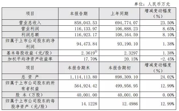2018年1-12月,裕同科技實現營業收入85.80億元,同比增長23.50%;實現歸屬于上市公司股東的凈利潤9.45億元,同比增長1.38%。 經營業績同比略有上升,主要原因為:2018年,裕同科技一方面加大市場開發力度和各項業務布局,部分產能暫未釋放;另一方面實施精細化管理,提升管理和運營效率。總體上,裕同科技在原材料價格上漲以及外匯大幅波動等不利因素的影響下,實現了業績的增長。