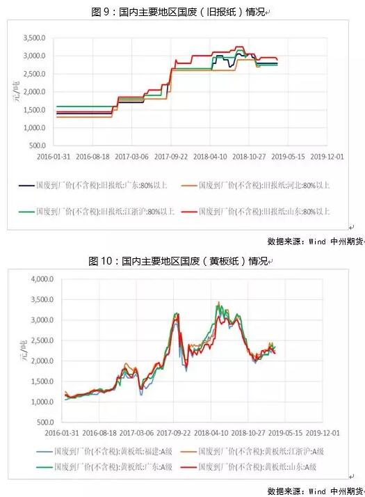(三)國內(nèi)廢紙現(xiàn)貨情況 截至3月20日,全國舊報(bào)紙到廠價(jià)整體運(yùn)行區(qū)間為2750—2900元/噸,本周個(gè)別地區(qū)價(jià)格出現(xiàn)下跌,下跌幅度為50元/噸。黃板紙到廠價(jià)為2190—2350元/噸,本周各地區(qū)價(jià)格漲跌不一,但整體波動(dòng)幅度不大,波動(dòng)幅度小于50元/噸。2月全國紙廠廢舊黃板紙庫存天數(shù)為8.38天,紙廠庫存維持在正常水平。