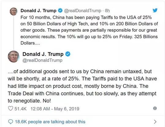 對于特朗普的此番言論,外交部發言人耿爽6日回應稱,類似的情況以前多次出現,中方的立場和態度一直非常明確。 “當務之急,我們還是希望美方和中方共同努力,相向而行,爭取在相互尊重的基礎上達成一個互利雙贏的協議。這不僅符合中方利益,也符合美方利益,更是國際社會的普遍期待。國內外都很關注下一輪經貿磋商,國際社會有很多的評論,中方也正在了解相關情況,中方團隊正在準備赴美磋商。”他說。 這事特朗普也有虎頭蛇尾偃旗息鼓的可能,說白了就是把訛詐的那塊遮羞布摘掉,大家繼續談。 因此,不要太把特朗普發的推特當回事,也不能不把特朗普的推特當回事。對于這次,要淡然、理性看待,要看出特朗普虛張聲勢的本質,要看到他想借推特達到其政治目的的企圖的本質。 中國代表團正在準備去華盛頓的路上,接下來將如何演繹,我們需要密切觀察!至于特朗普是否撕毀協議,一點都不必擔心,兵來將擋水來土掩,抱著什么結果都能接受的態度,時間就在我們這邊!