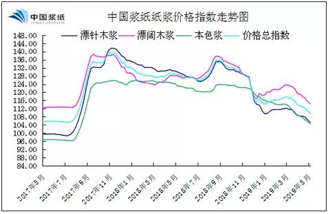 中國漿紙紙漿價格總指數較上周下滑1.51%,收于109.55點,價格總指數延續下行趨勢,且跌勢較上周相比有所擴大。5月上旬,紙漿市場交投氛圍延續平淡,下游市場需求表現依舊萎靡不振,以剛需交易為主,漿價整體呈震蕩下行的走勢。 具體來看,本周漂針木漿價格指數環比下滑1.60%,收于105.21點。本周針葉漿現貨市場交投氣氛一般,漿價混亂下行,跌幅在100-150元/噸左右,市場觀望氛圍較為濃厚,目前針葉漿市場參考報價:銀星5150-5200元/噸,凱利普、金獅5250元/噸,馬牌5150-5200元/噸,月亮5200元/噸,北木5650元/噸,烏針5100元/噸。外盤方面,5月份智利Arauco銀星下跌10-30美元/噸,合同面價710美元/噸;俄羅斯llim針葉漿陸運凈價在660-670美元/噸。本周針葉漿市場行情走勢略顯低迷,場內詢盤氛圍不佳,下游紙企秉承按需采購原則,在外盤漿價下調整理的帶動下,針葉漿現貨價格整體呈小幅下滑趨勢,短期內預計針葉漿市場行情缺乏向好動力,成交清淡格局難以改善。 本周漂闊木漿價格指數環比下降1.43%,收于114.32點。本周闊葉漿現貨市場需求疲態依舊,貿易商對外報價小幅下滑,整體跌幅在50-150元/噸左右,市場報價較為混亂,實單成交存一定商談空間,目前闊葉漿市場參考報價:鸚鵡、金魚5000元/噸,小鳥、麒麟、羅賽4900元/噸,實單成交側重一單一談。外盤方面,5月份智利Arauco明星報價持平上月,合同面價720美元/噸,成交凈價670-700美元/噸不等;俄羅斯llim闊葉漿價格持穩。本周闊葉漿現貨市場行情表現趨于平淡,由于當前下游紙張市場采購積極性始終難以調動,闊葉漿港口庫存仍處高位運行,漿價繼續向下承壓,總體來看,受中美貿易端以及下游需求疲態等因素影響,短期內預計闊葉漿市場低迷行情無法改善,漿價或將呈窄幅下行態勢。 本色漿方面,本周本色漿價格指數環比下滑1.40%,收于104.41點。本周本色漿現貨市場交投氛圍持續清淡,下游市場需求欠佳,漿價整體呈小幅下行趨勢,跌幅在50-100元/噸左右,實單成交價側重商談為主,目前本色漿市場參考報價:金星5300元/噸,烏本塊3850元/噸。外盤方面,5月份智利Arauco金星報價持穩,面價在710美元/噸;俄羅斯llim本色漿烏本塊價格持平上月,海運面價550美元/噸。以目前行情來看,本色漿現貨市場處于供需兩淡的局面,紙企剛需補庫,需求情況依舊不足,短期內預計本色漿市場行情或延續弱勢下行的趨勢。