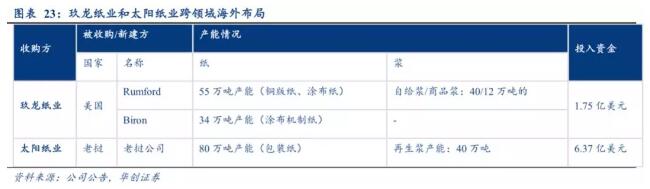 傳統意義的廢紙系/木漿系格局可能顛覆。憑借顯著的資金優勢,紙企在海外大刀闊斧地并購、建廠,值得注意的是“廢紙系”龍頭玖龍紙業收購木漿公司,“紙漿系”龍頭太陽紙業收購包裝紙紙廠。短期來看,由于海外建廠周期約為9-10年故壁壘較高,收購所帶來的短期效應更為明顯;長期來看,跨領域的業務育熟后,造紙行業可能迎來“全能型”大龍頭紙企。