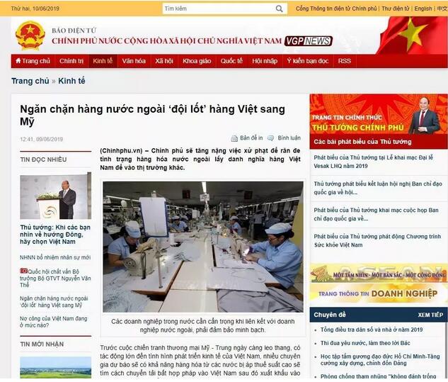 圖|越南政府門戶網(wǎng)站 英國路透社10日引述越南海關(guān)前一天發(fā)表的聲明稱,該部門已在中美貿(mào)易爭端持續(xù)期間發(fā)現(xiàn)幾十起中國產(chǎn)品通過“原產(chǎn)地造假”和“非法轉(zhuǎn)運(yùn)”活動(dòng),以躲避美國對(duì)中國產(chǎn)品加征的關(guān)稅。 越南海關(guān)稱將對(duì)此類行為進(jìn)行嚴(yán)查并重罰。美國彭博社6月10日稱,自美中貿(mào)易緊張今年升級(jí)以來,越南對(duì)美出口正在激增。盡管有證據(jù)顯示其中一些增量歸功于供給鏈向越南轉(zhuǎn)移,但分析人士對(duì)這些激增到底在多大程度上屬于合法出口提出疑問。 越南海關(guān)在聲明中稱,原產(chǎn)地造假和非法轉(zhuǎn)運(yùn)商品大多發(fā)生在紡織品、海鮮、農(nóng)產(chǎn)品、瓷磚、蜂蜜、鋼鐵、鋁和木制品等行業(yè)。 越南政府發(fā)現(xiàn)的欺詐案例包括中國產(chǎn)品的包裝被改為“越南制造”,偽造原產(chǎn)地證書,再出口到美國。聲明援引的一個(gè)例子是,美國海關(guān)近期發(fā)現(xiàn)一家越南企業(yè)售往美國的“越南產(chǎn)”膠合板實(shí)際為中國產(chǎn)。 越南國會(huì)經(jīng)濟(jì)委員會(huì)常務(wù)委員Do Van Sinh說,允許被虛假貼牌的中國產(chǎn)品流入美國,越南可能遭到美國懲罰。聲明稱,越南海關(guān)正在制定一種能更好地識(shí)別并懲罰有關(guān)違規(guī)企業(yè)的程序。 就在上個(gè)月,美國財(cái)政部將越南列入“匯率操縱國”的觀察名單,換句話說,越南或許已經(jīng)受到美國的嚴(yán)格審查。 越南是迄今為止中美貿(mào)易戰(zhàn)最大的贏家 根據(jù)美國人口普查局最新數(shù)據(jù)顯示,今年第一季度,越南對(duì)美出口同比激增40.2%。其對(duì)美出口總額將有望超越意大利、法國、英國和印度等經(jīng)濟(jì)體。