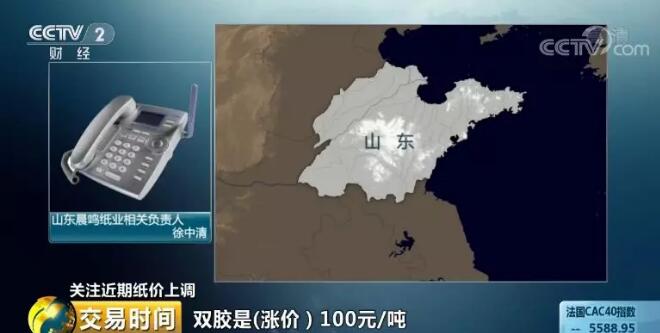 山東晨鳴紙業相關負責人 徐中清:雙膠紙漲價幅度大概是100元/噸,銅版紙漲價幅度大概是100元/噸,文化紙漲價幅度大概是200元/噸。