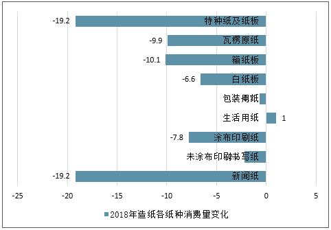 數(shù)據(jù)來源:公開資料整理 2018年造紙各紙種消費量變化