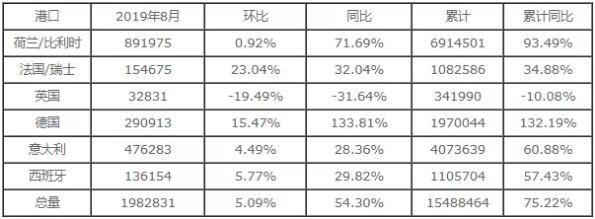 2019年1-8月歐洲紙漿累計(jì)庫(kù)存量同比增長(zhǎng)75.22%。今年前8月,歐洲紙漿整體庫(kù)存高于去年同期水平。