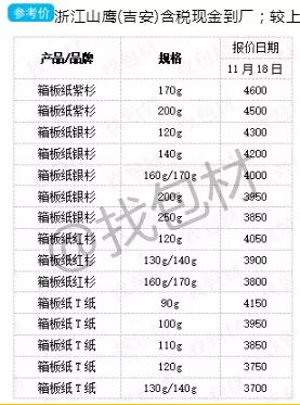▲圖片來源:找包材 浙江山鷹:11月30日宣布牛卡、箱板紙、瓦楞紙價格上調50元/噸。