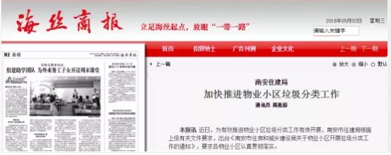蘇州市:垃圾分類工作將納入對物業服務企業和物業管理項目的考核內容。 位于 46 個重點城市之列的蘇州于 2017 年 6 月印發了《蘇州市生活垃圾強制分類制度實施方案》(以下簡稱《方案》),《方案》明確了在生活垃圾分類過程中,物業的責任,垃圾分類工作將納入對物業服務企業和物業管理項目的考核內容。隨后,蘇州市對小區垃圾分類做了更為嚴格的要求。蘇州市住建部要求,物業須盡到宣傳職責,并完善垃圾分類標識。