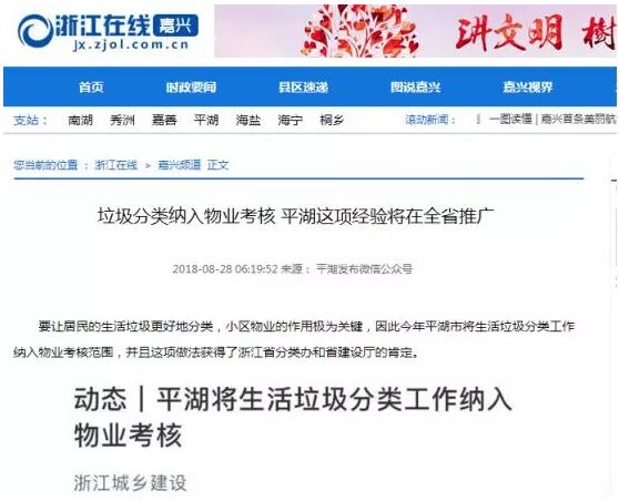 平湖市:出臺《平湖市物業服務行業開展“深入推進垃圾分類、建設金平湖美麗物業”專項行動方案》 正式實施的《浙江省城鎮生活垃圾分類管理辦法》明確,實施物業管理的住宅小區和商業、辦公場所,生活垃圾分類投放責任人為物業服務企業,明確了物業服務企業的主要責任。平湖市出臺《平湖市物業服務行業開展“深入推進垃圾分類、建設金平湖美麗物業”專項行動方案》,對物業行業生活垃圾分類的任務要求、行動步驟、行動時間進行總體部署,并形成行業主管部門、企業、項目三個層面的物業行業垃圾分類三級管理制度。