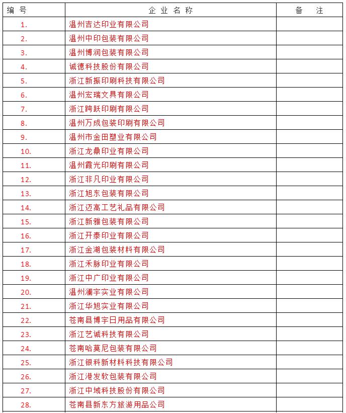 龍港市規(guī)上印刷企業(yè)復工復產(chǎn)已備案名單