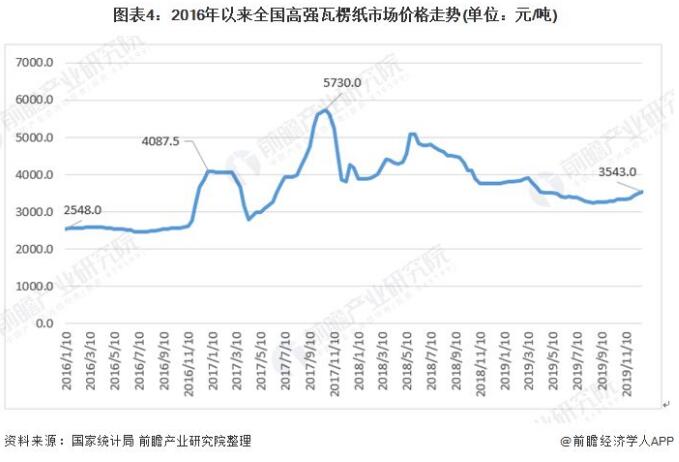 瓦楞紙箱是指使用瓦楞紙板經過印刷、模切、釘箱或糊盒制成的包裝用紙容器。作為一種外包裝,瓦楞紙箱主要起到運輸過程中的儲存、保護作用,其印刷內容可還起到美化外觀、展示產品、廣告宣傳的作用。與金屬、塑料、玻璃包裝產品相比,瓦楞紙箱廢棄物較少、易于回收再利用,并且印刷時主要采用無毒易分解的環保水性油墨,是公認的“綠色包裝產品”,廣泛地應用于家電、電子產品、IT、食品飲料、圖書、日化、紡織品等下游行業中。 瓦楞包裝屬于紙包裝的一種,是指用紙和紙板等原材料,進一步加工制成紙制品的生產活動;并利用加工制造出來的瓦楞紙、紙板、紙箱、紙盒等進行相關行業產品包裝服務的一系列活動。 瓦楞包裝行業受原材料價格影響較大 箱板瓦楞紙包裝行業作為典型的中游行業,以上游造紙企業生產的箱板瓦楞紙原紙作為原材料,將瓦楞紙箱產成品提供給下游食品飲料、電子、家電等消費領域公司以及物流快遞公司。