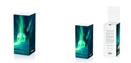 游明朝芬林紙板對包裝結構、原始圖形和印花進行了設計。北極光形象是在 Envirofoil®上印刷而成。Envirofoil 不含塑料,具有全息金屬化效果,由紙業加工商 Hazen 采用傳鋁含量為 1% 的傳統鋁箔壓板制成——既經濟又環保。